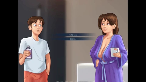 Un gars regarde une maman sexy prendre un bain avant de partir au collège dans l'été saga.